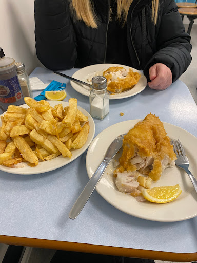 This is the most delicious fish and chips I have ever eaten. I like soft white fries, which won’t break my mouth, and the portion is very large. I tried my best to eat it, but I didn‘t finish it all. This is a store with a history. Blue and white are the main tone of this store, which is very similar to the feeling of being by the sea. The fried fish is very fresh, very large and reasonably priced. You can come and eat it! The staff will smile at you. I like it very much!